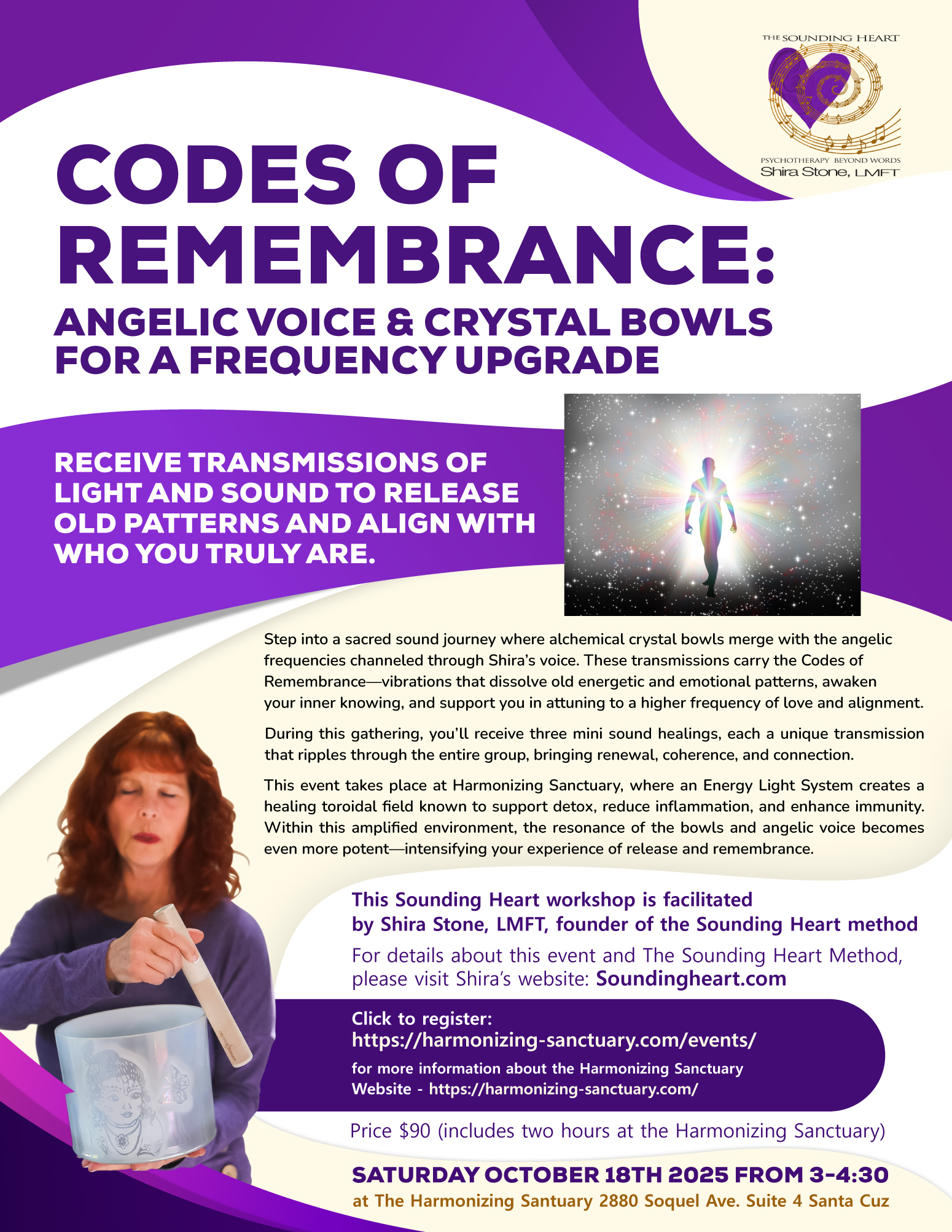 Codes of Remembrance: Angelic voice & Crystal Bowls for a Frequency upgrade with Shira Stone